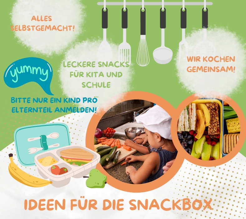 Was kommt morgens ins die Snackbox? Die Antwort ist nicht immer leicht. In dem zusammen mit dem Haus der Familie angebotenen Kurs „Ideen für die Snackbox für Eltern und Kinder ab 3 Jahren“ wird zusammen gekocht – für Leckeres in der Box und jede Menge Spaß.